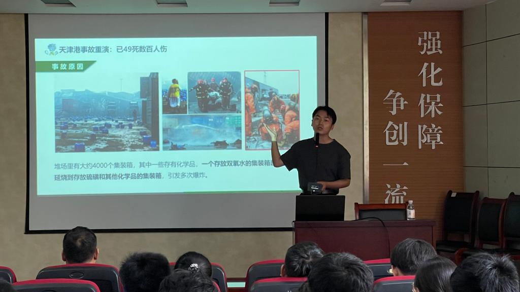 演练开始前进行了实验室安全、消防安全、特种设备安全及应急防护方面的知识培训讲座。本次演练模拟场景为实验过程中由于学生操作不当引起浓硫酸泄漏并造成衣物沾染后的应急处置。泄漏事故发生后,学生第一时间报告任课老师,老师立即安排同学去应急喷淋装置进行冲洗自救,同时组织实验室内其他同学有序撤离,并及时通知安全人员对泄漏化学品进行处置。