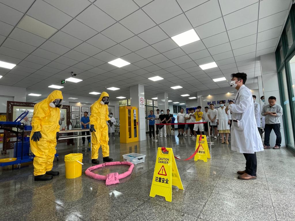 根据《教育部关于加强高校实验室安全工作的意见》,为加强实验室安全防范,进一步提高实验人员应对危险化学品突发事故的应急处置能力,6月23日下午,学校在材料科学与工程学院开展实验室危险化学品泄漏应急演练。