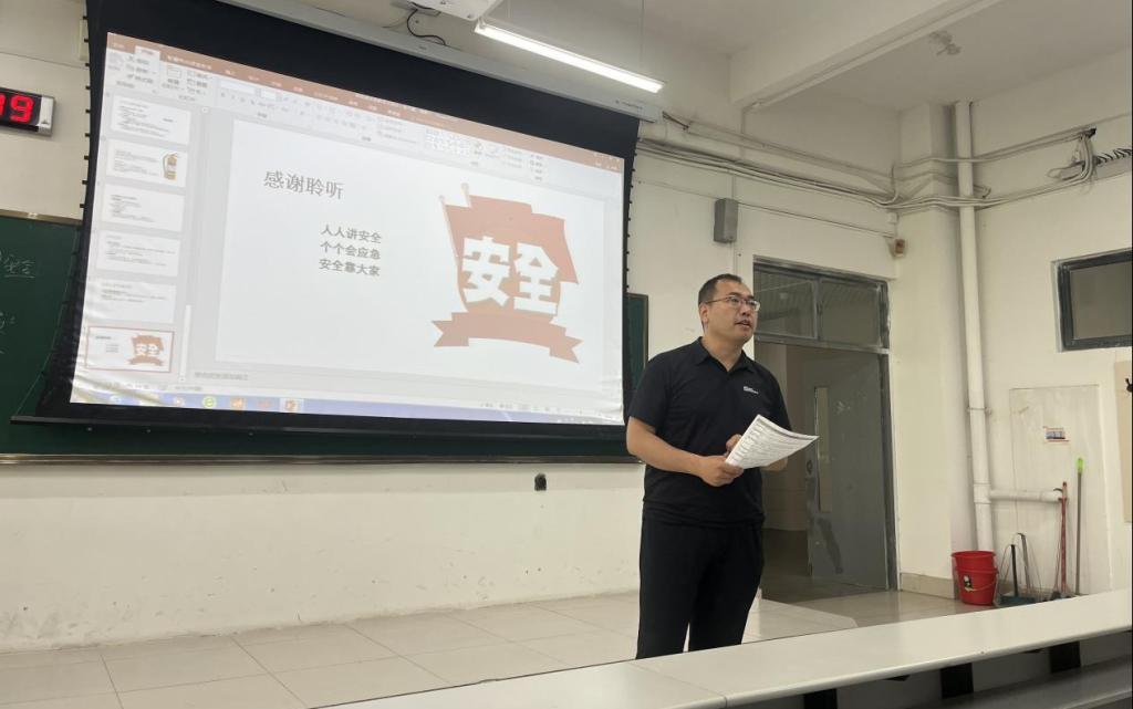 演练正式开始前,J5号教学楼208教室内率先开展“实验室氢气使用规范及应急处置”主题安全教育培训。化学与生物工程学院实验中心主任郭清彬围绕氢气储存规范、实验操作流程、应急预案启动要点及紧急疏散路线规划等核心内容展开讲解,结合典型事故案例演示化学品安全事故自救技巧,为后续实操环节奠定理论根基。储能技术学院副院长杨鑫现场与研究生开展互动问答,着重强调气体使用规范的重要性,要求全体人员以“零事故”为目标筑牢安全意识防线。