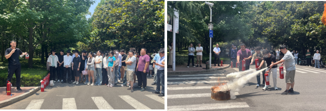 演练尾声,全体人员于J5号教学楼西门外广场开展灭火器实操训练。在保卫部(安全管理处)专业指导下,师生依次进行灭火器材使用演练,通过“提、拔、握、压”标准动作实操,进一步巩固火灾扑救实战技能。