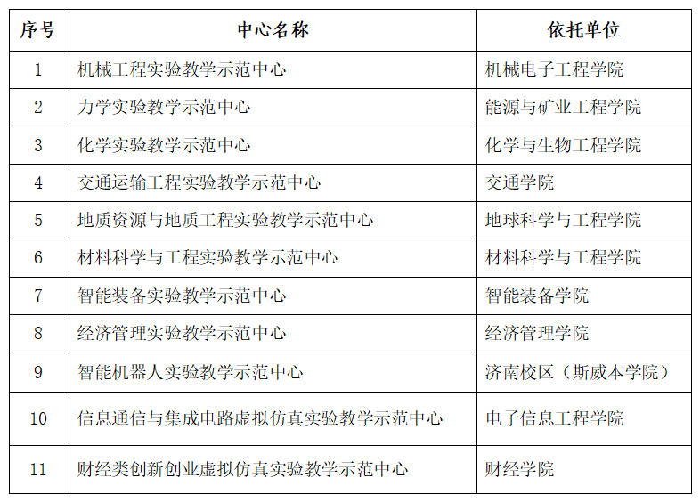 根据《关于开展2024年实验教学示范中心申报工作的通知》(实设处函〔2024〕24号)要求,经单位推荐、形式审查、专家评审等工作程序,经学校研究,确定立项建设 11个校级实验教学示范中心(含虚仿类),确定5个中心作为本年度省级实验教学示范中心申报的培育项目。现将名单予以公布,并就有关要求通知如下。