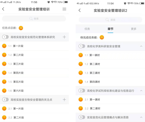 实验室安全管理人员专项培训中,学校利用收集和录制的实验室安全管理培训视频,依托超星泛雅学习平台和学习通APP,建成实验室安全管理系列在线培训课程,供各级实验室管理人员在线学习。