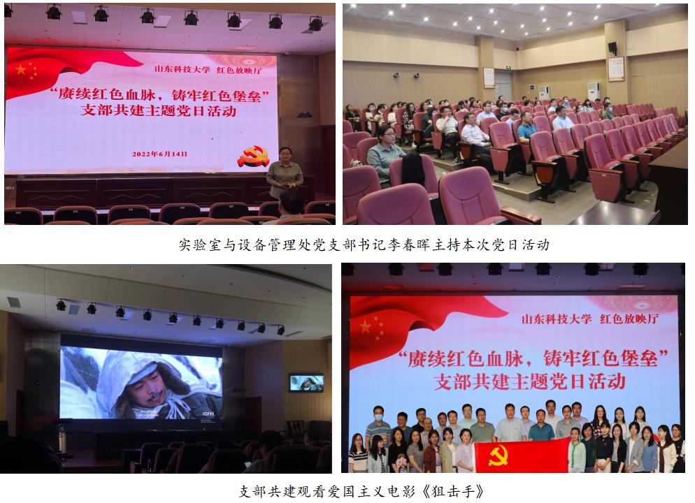 为了进一步提高支部党建工作质量,落实学校《基层党建“三红三创”行动实施方案》, 6月14日下午,实验设备处、人事处、教务处、财务处、创新创业学院党支部共建开展了“赓续红色血脉,铸牢红色堡垒”主题党日活动,借力学校红色放映厅的资源支持,共同观看爱国主义电影《狙击手》。
